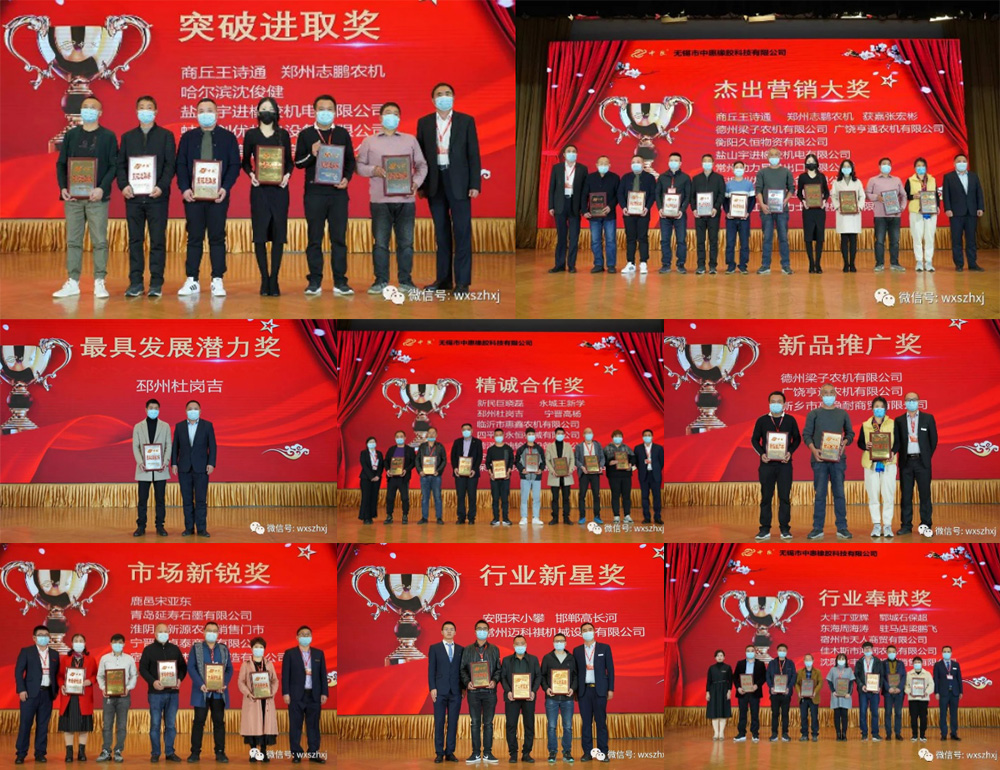 2020年,中惠主机和配件销售额都出现了逆势增长,虽然有产品质量升级以及农机行业大环境的因素,但是更离不开广大经销商朋友们的大力支持。为表彰这一年辛勤付出的经销商朋友,特设立行业奉献奖、行业新星奖、市场新锐奖、新品推广奖、精诚合作奖、具发展潜力奖、杰出营销大奖、突破进取奖、钻石营销大奖等九大奖项。