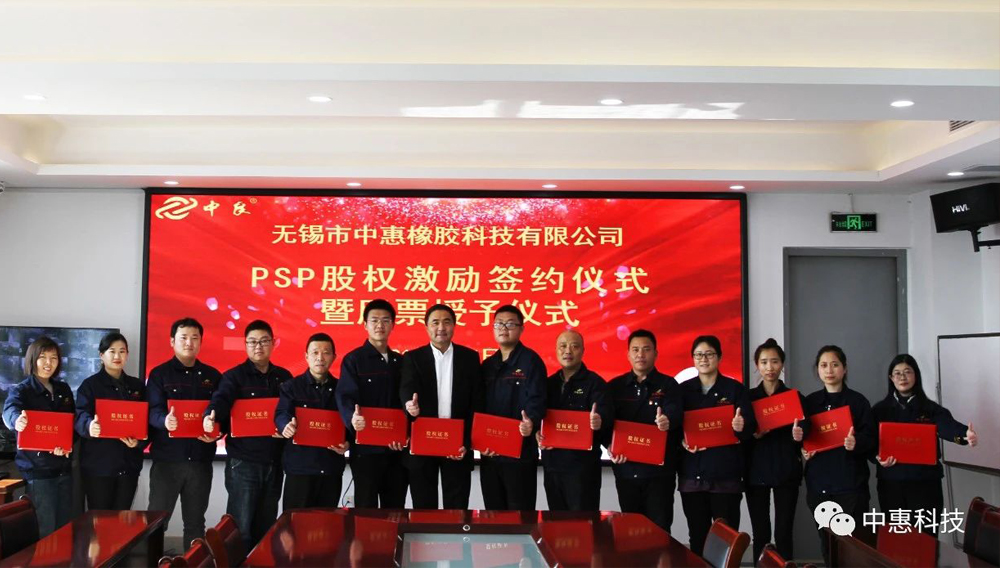 企之强者、企之大者,不为一己私利,而为员工利益(亦或员工长远发展)、客户利益、社会责任、股东利益兼而有之,方能恒强恒大也!为了搭建真正共赢的企业发展机制,增强员工的战斗力和凝聚力,使一个人操心的公司转变为一个团队操心的公司,无锡市中惠橡胶科技有限公司股东自2021年开始导入PSP股权激励,计划每一年推出一期,本期800万股已于2021年2月4日授予到位。