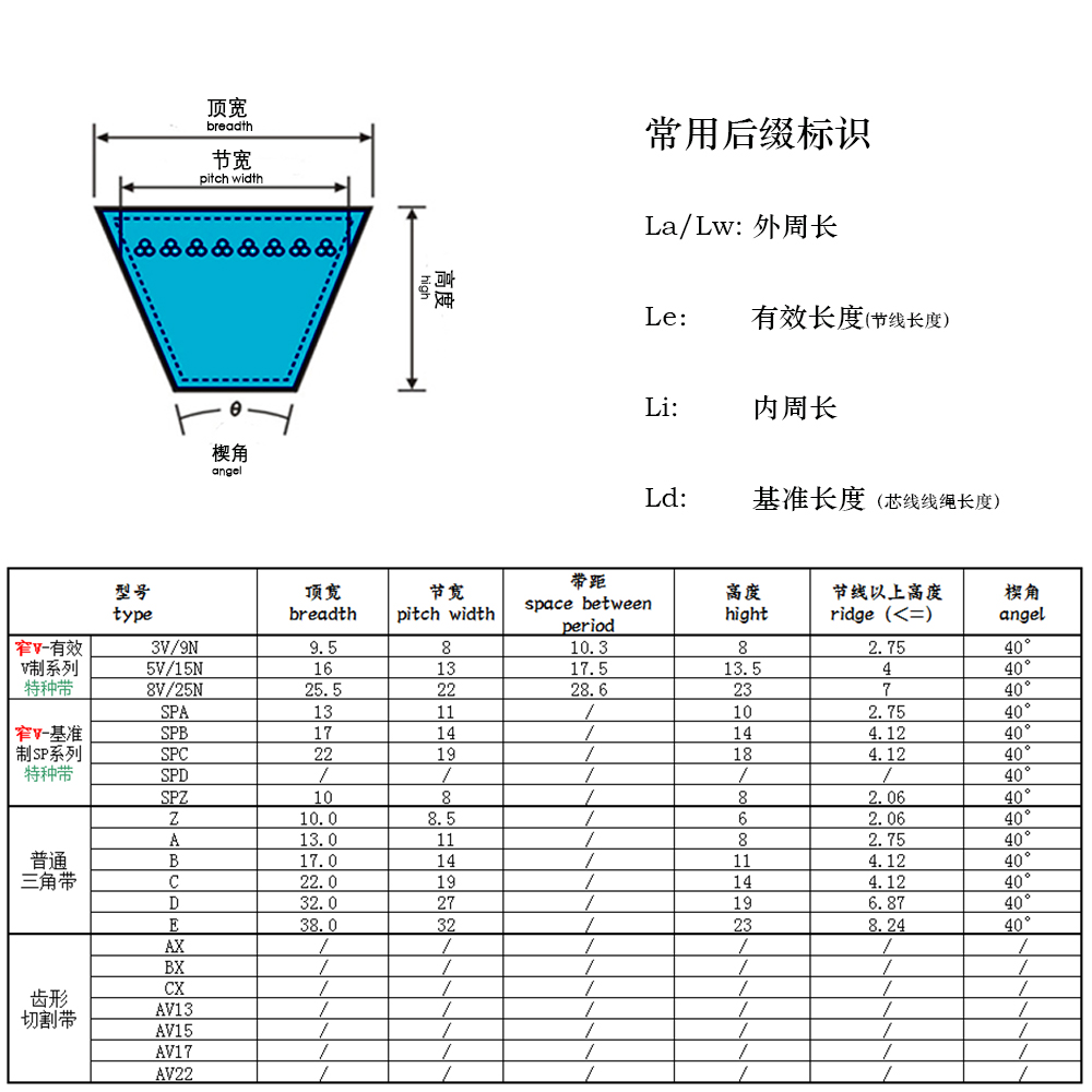 主要型号有:A、B、C、D、E;SPA、SPB、SPC、SPD;3V、5V、8V还有齿形带AX、BX、CX、DX、AV15、AV17、AV22等。产品具有外观光洁,散热好、强度高,耐疲劳,伸长小,尺寸稳定,使用寿命长等特点…